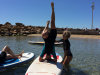 The practice of SUP YOGA consists of doing different yoga poses on a SUP board. In our classes we use traditional Hatha Yoga techniques from India.
