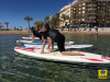 The sessions usually take about an hour (or an hour and a half if you have never done SUP before and need an initiation with the SUP instructor) . We start with a series of stretches and sun salutations to warm the body. Then we continue in the water realizing the classic postures of Hatha. We finished the practice with a little final relaxation lying face up on top of the table in Savasana pose. We let ourselves be carried by the waves of the sea with every breath.